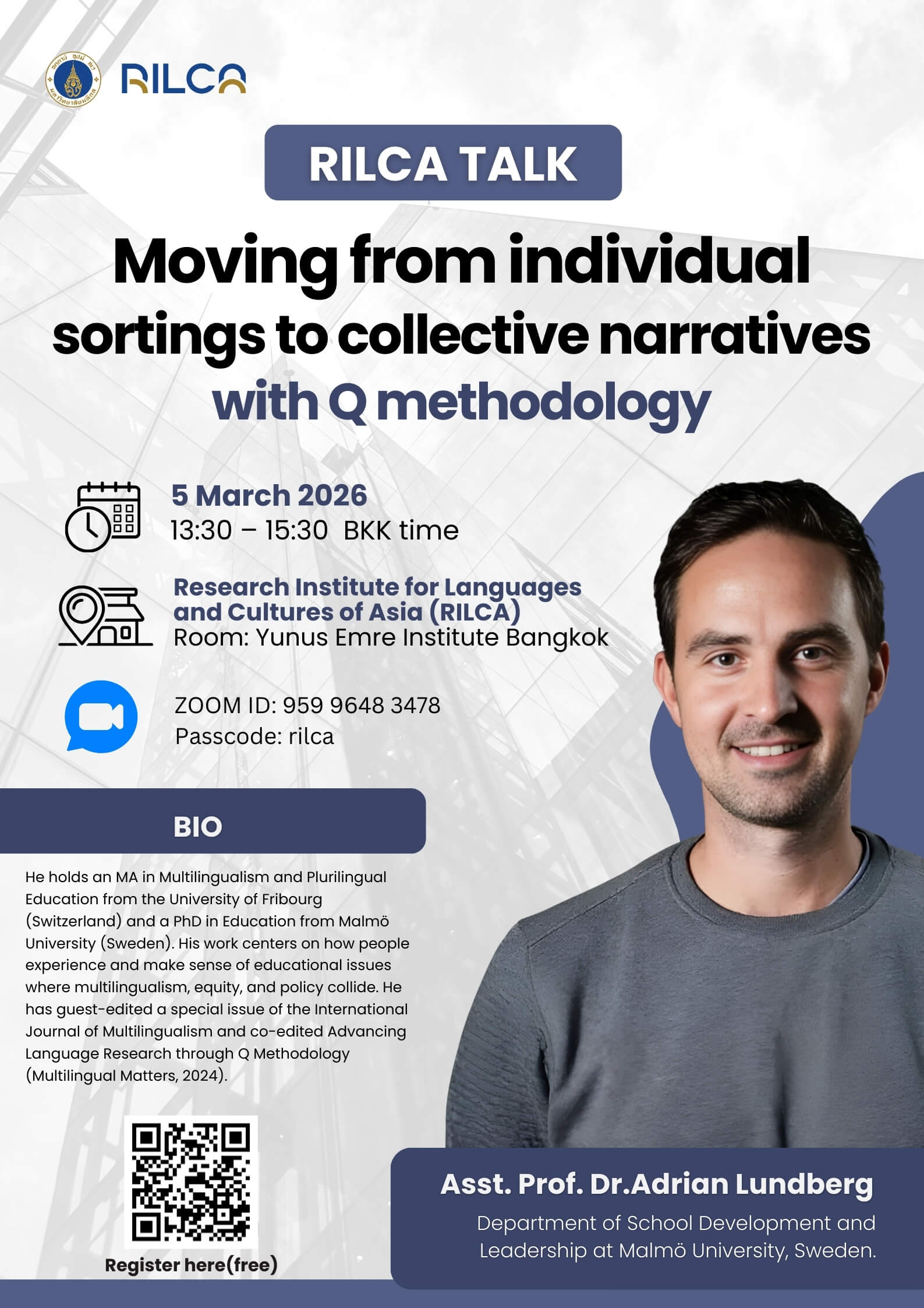 Speaker: Asst. Prof. Dr.Adrian Lundberg from Department of School Development and Leadership at Malmö University, Sweden