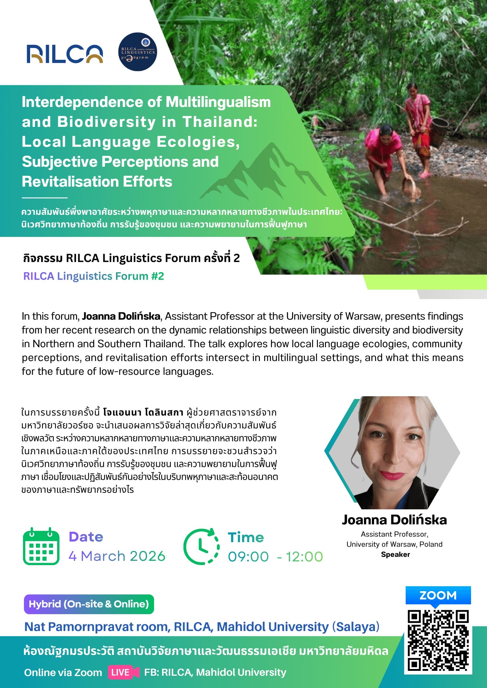 วิทยากรโดย • ดร.ยุทธพร นาคสุข อาจารย์ประจำหลักสูตรภาษาศาสตร์ สถาบันฯ • นายศักดิ์นรินทร์ พิมพ์วันคำ ศิษย์เก่าหลักสูตรภาษาศาสตร์ สถาบันฯ