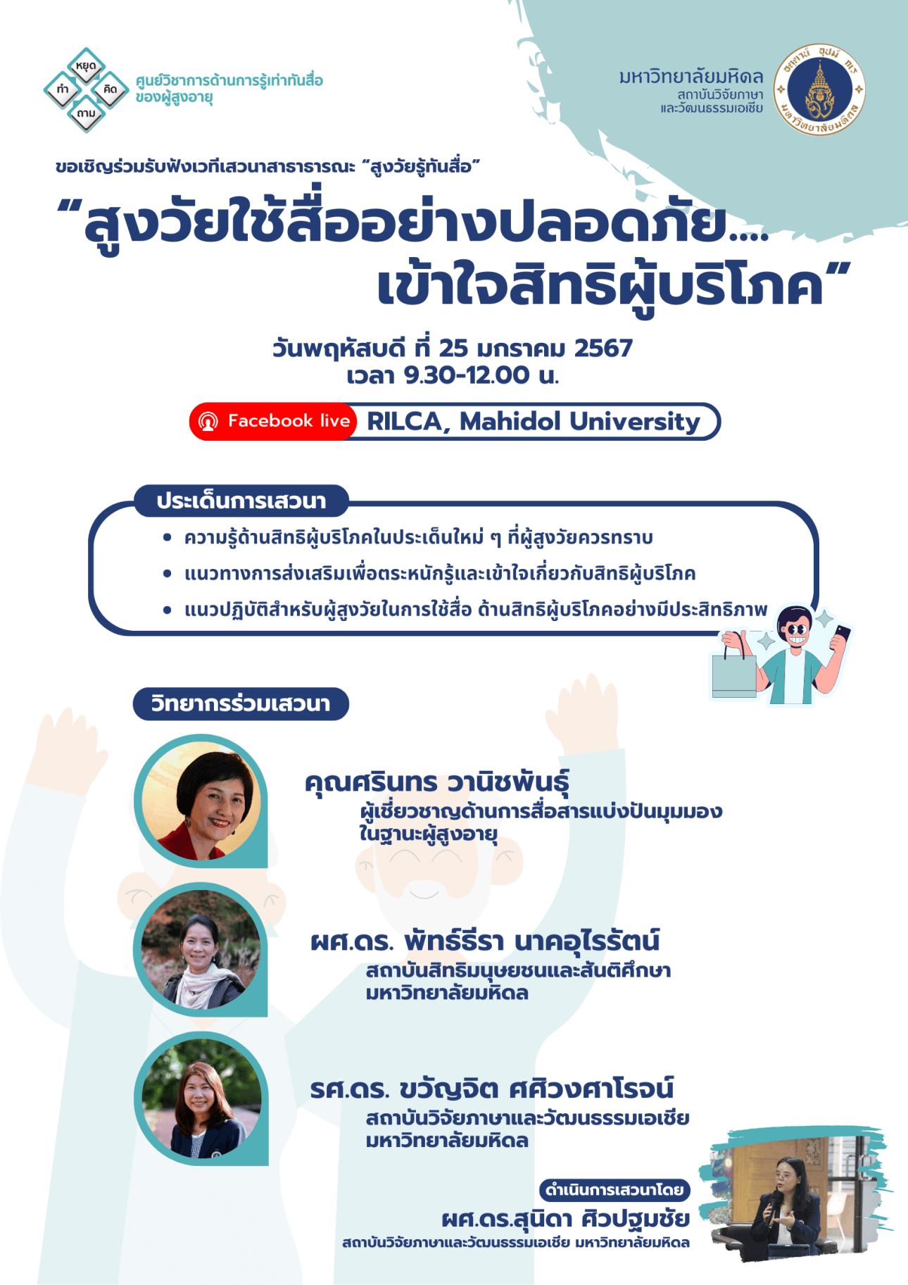 ถ่ายทอดสดผ่าน FB Live: RILCA, Mahidol Univeristy